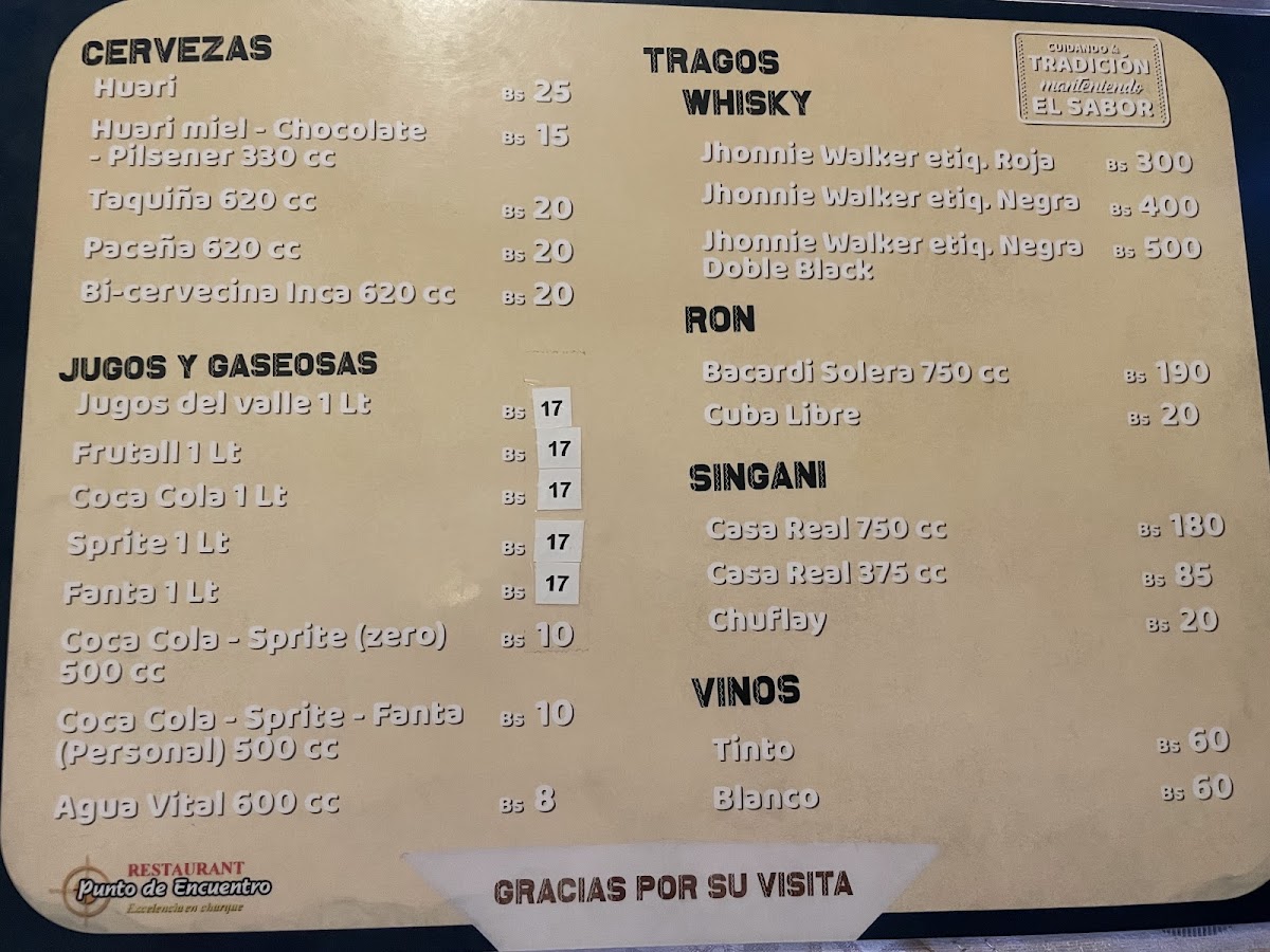 Whether you are a fan of traditional cuisine or a curious foodie, Punto de Encuentro promises a memorable meal that embodies the heart of Bolivian gastronomy.